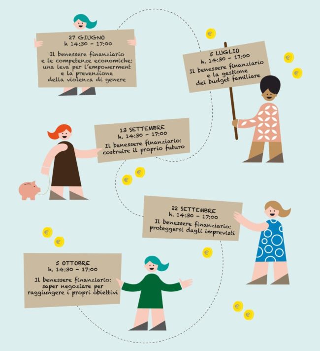 I webinar sono aperti a tutte e la partecipazione è gratuita (previa registrazione). Gli incontri esplorano gli aspetti teorici e pratici della gestione del denaro, per aiutarti ad affrontare le questioni finanziarie legate alla vita quotidiana. I 5 webinar 2022, condotti con modalità interattive, sono cosi strutturati: aspetti teorici e pratici della gestione del denaro.…