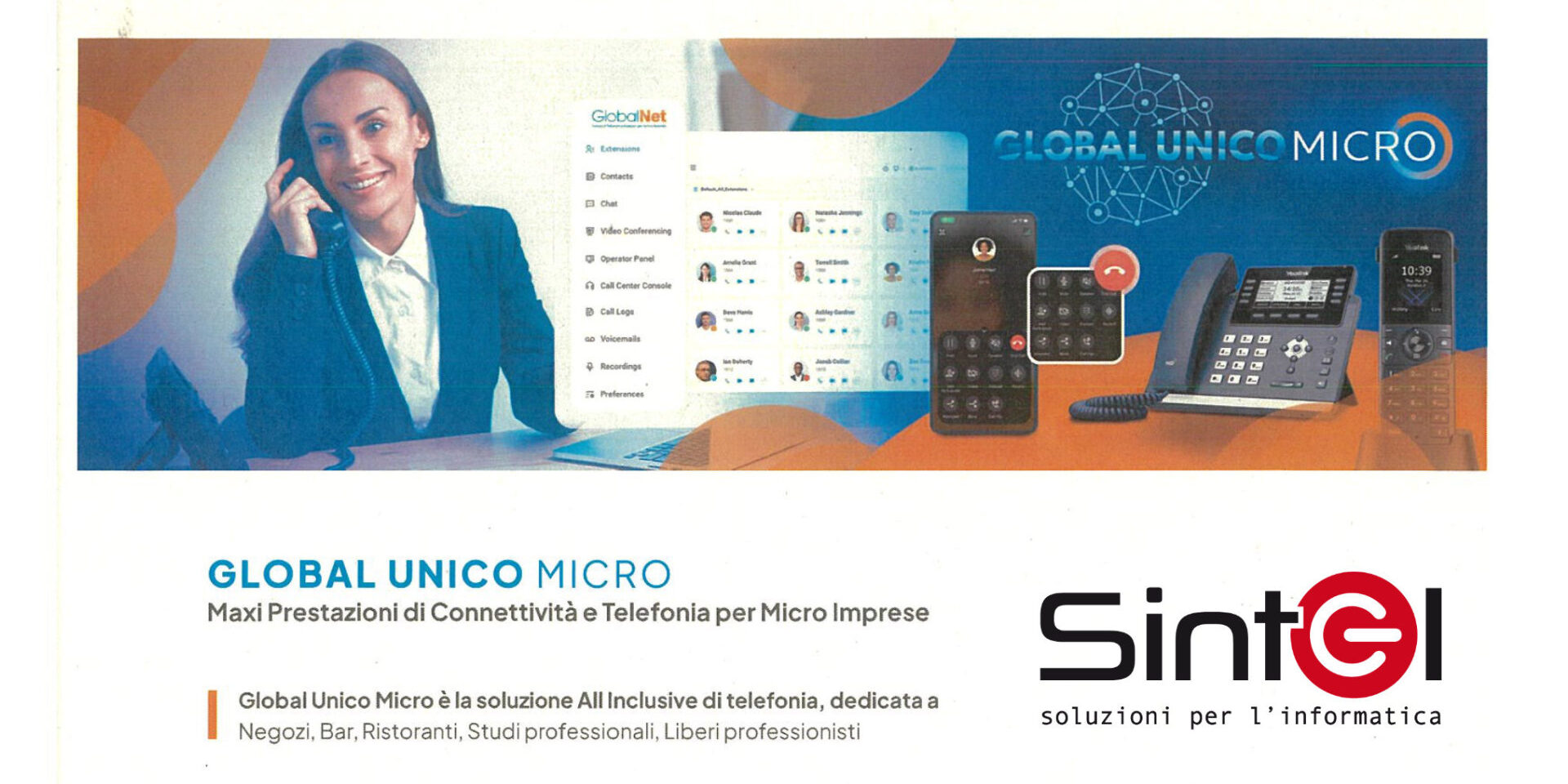 Global Unico Micro è la soluzione All Inclusive di telefonia, dedicata a negozi, bar, ristoranti, studi professionali e liberi professionisti.
