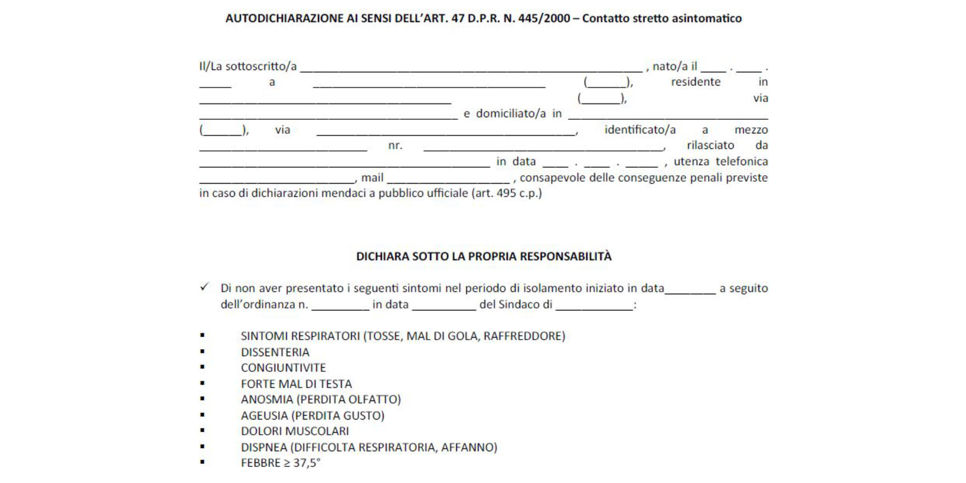 Raggiunto il quattordicesimo giorno di isolamento senza sintomi, chi non sia stato contattato potrà presentare un'autodichiarazione in Comune permettendo così al Sindaco di togliere l'ordinanza.