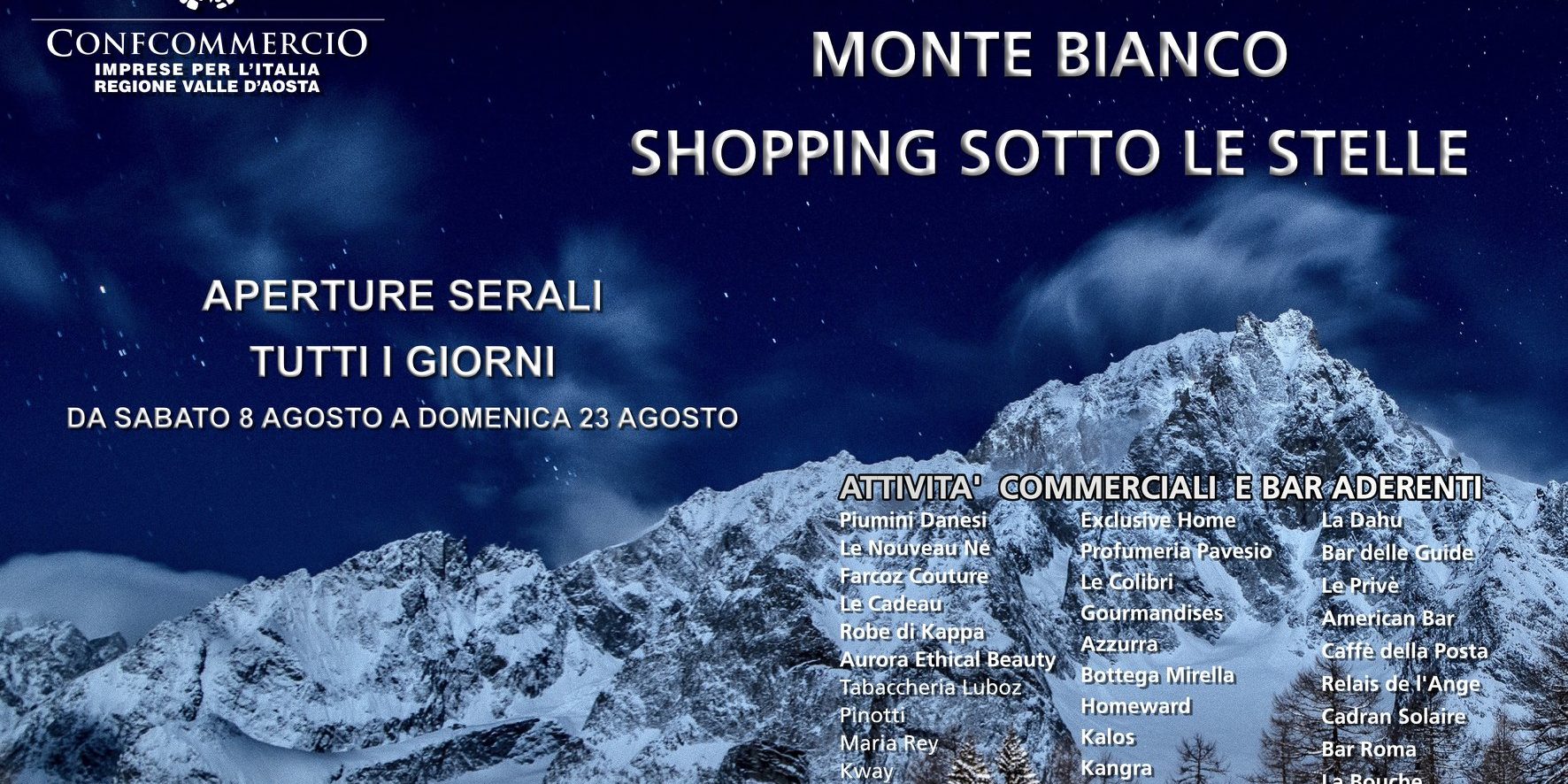 Da sabato 8 agosto debuttano le aperture serali per le attività commerciali ed i pubblici esercizi ai piedi del Monte Bianco.