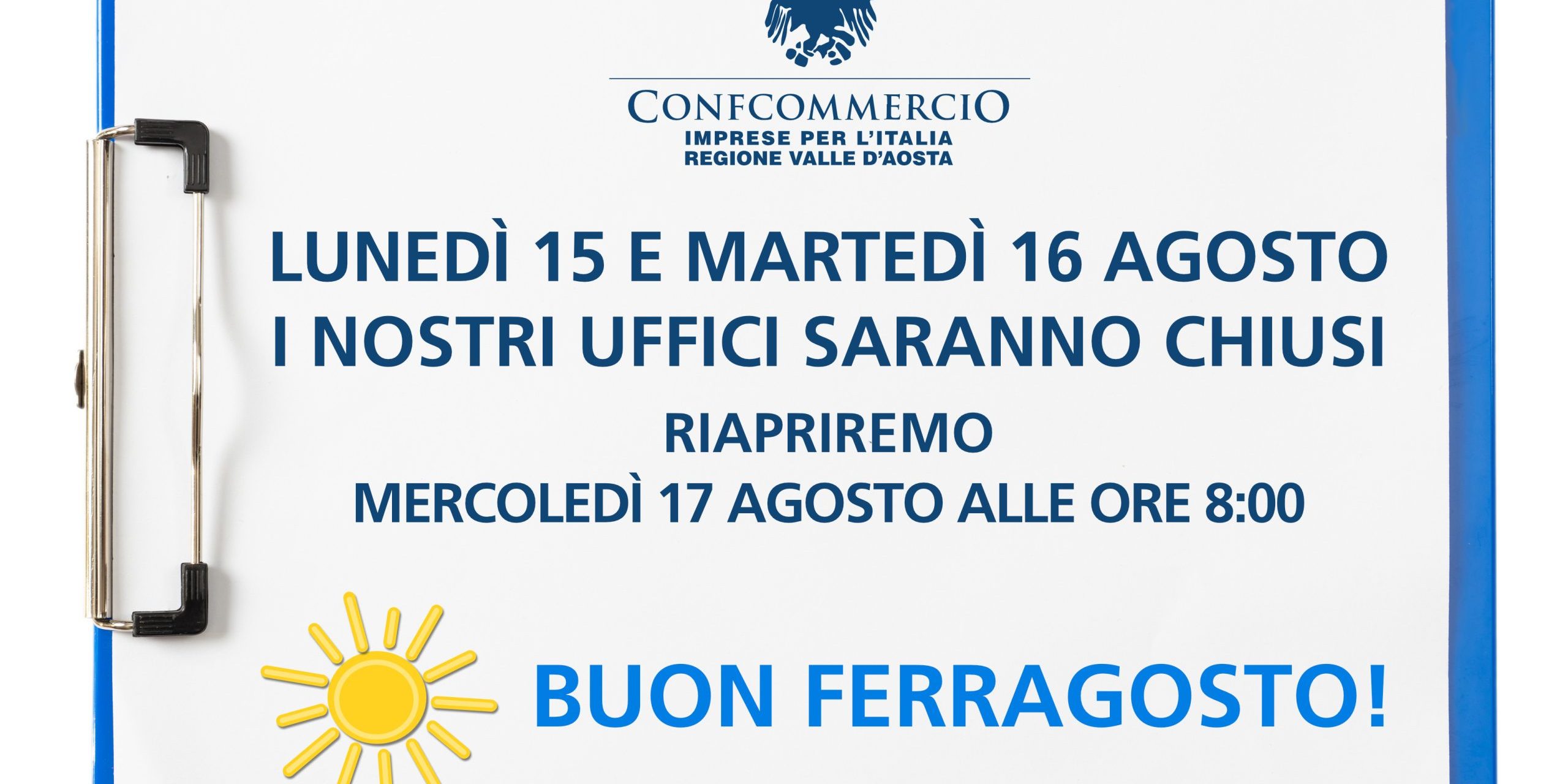 Lunedì 15 e martedì 16 agosto i nostri uffici saranno chiusi.