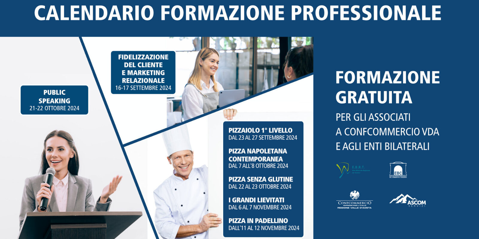 I corsi saranno gratuiti per gli associati a Confcommercio VdA ed iscritti agli Enti Bilaterali del commercio e del Turismo.