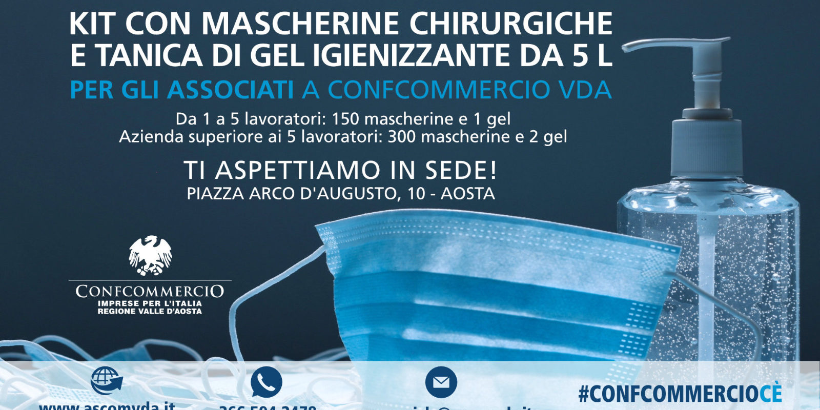 Si tratta della fornitura che il Coordinamento Regionale di Protezione Civile Valle d'Aosta ha donato a Confcommercio VdA da distribuire ai nostri associati.