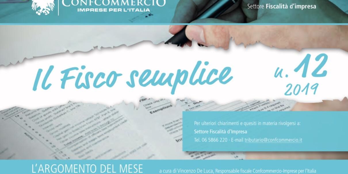 Gen112020NewsCondividi su SCARICA E SCOPRI L'INTERA RIVISTA QUI Il Fisco semplice (n. 12-2019) Category: NewsBy AscomVda11 Gennaio 2020 Author: AscomVda Post navigationPreviousPrevious post:A TAVOLA CON LA CUCINA VALDOSTANA – QUI SAPORI DELLA TRADIZIONENextNext post:125 INCIDENTI IN 2 ANNI , PASSO INDIETRO SUL TAPPO ANTIRABBOCCORelated postsTIROCINI ESTIVI EXTRACURRICOLARI PER MINORENNI: DISPONIBILITA’ DEI PUBBLICI ESERCIZI ED ATTIVITA’ COMMERCIALI ASSOCIATE27 Marzo 2025VILLENEUVE, NUOVI NEGOZI IN LOCALITA’ CHAMPAGNE: CONFCOMMERCIO VDA ASSIEME AI COMMERCIANTI DEL BORGO CHIEDONO SIA ALL’AMMINISTRAZIONE COMUNALE CHE ALLA REGIONE DI SALVAGUARDARE LE ATTIVITA’ COMMERCIALI ESISTENTI22 Marzo 2024ADERISCI ALL’INIZIATIVA MENU BAMBINI23 Gennaio 2024PUBBLICAZIONE IN GAZZETTA UFFICIALE DEL D.L. 30 MARZO 2023, N.34, C.D. “BOLLETTE”6 Aprile 2023DIRITTI D’AUTORE – NUOVE TARIFFE 2023 PER I DIRITTI DI ESECUZIONE MUSICALE19 Gennaio 2023NUOVO REGOLAMENTO REQUISITI IGIENICO SANITARI (REGOLAMENTO REGIONALE 2 DICEMBRE 2022, N.2)17 Gennaio 2023