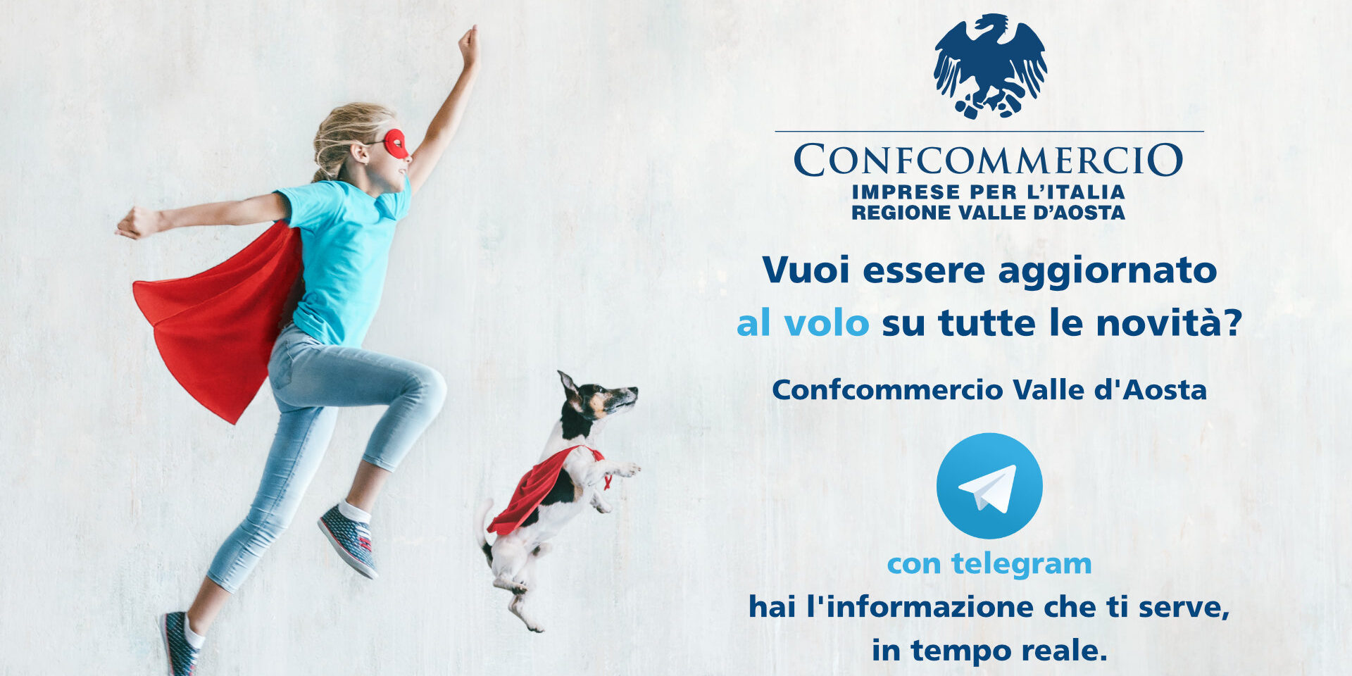 Da oggi Confcommercio VdA è presente anche sul canale Telegram , il servizio di messaggistica istantanea a disposizione degli associati per ricevere direttamente sul proprio telefono, tablet, computer notizie di pubblica utilità per gli imprenditori