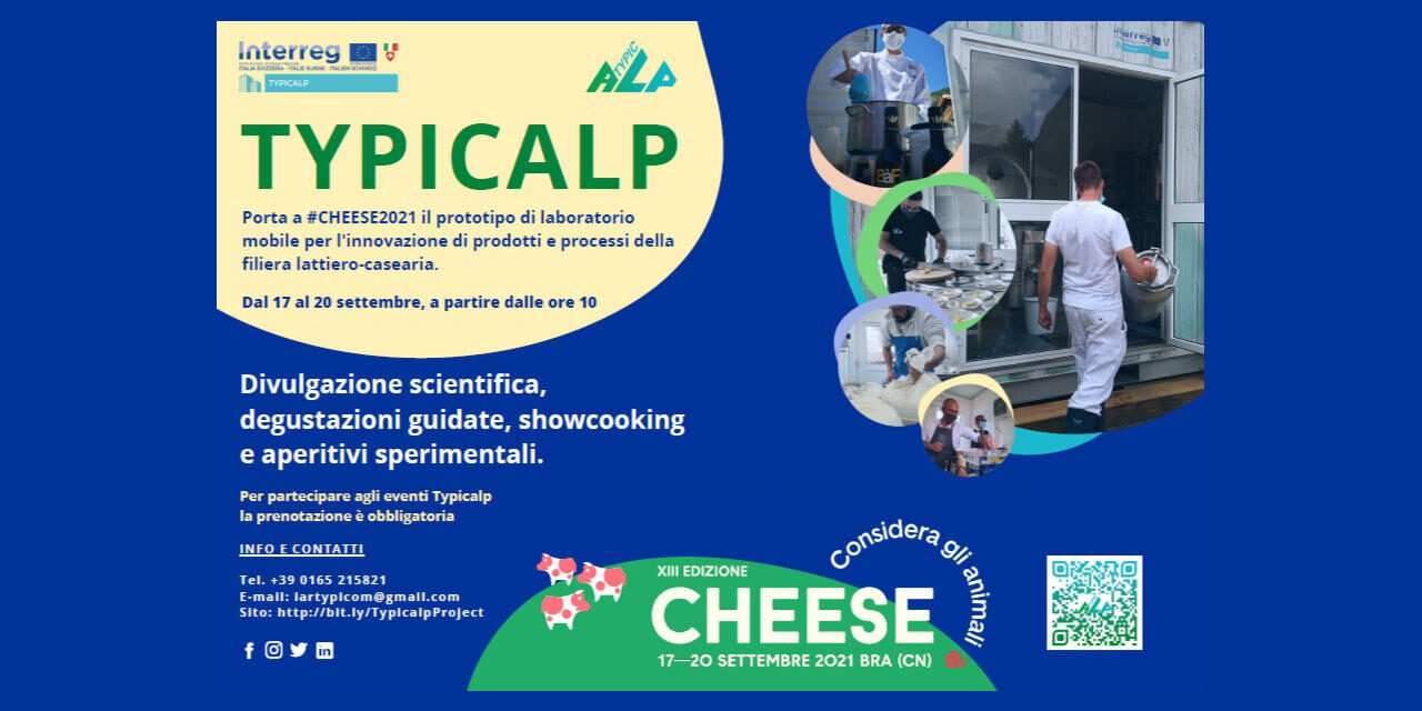 Il team Typicalp si sposta infatti a Cheese 2021, dove i tecnici ricercatori dell’Institut Agricole Régional – capofila del progetto Interreg Italia-Svizzera – saranno a disposizione degli operatori della filiera e del grande pubblico per momenti di formazione e di confronto sui temi della tecnologia di trasformazione, valorizzazione dei sottoprodotti di filierae sviluppo di nuovi prodotti e processi.