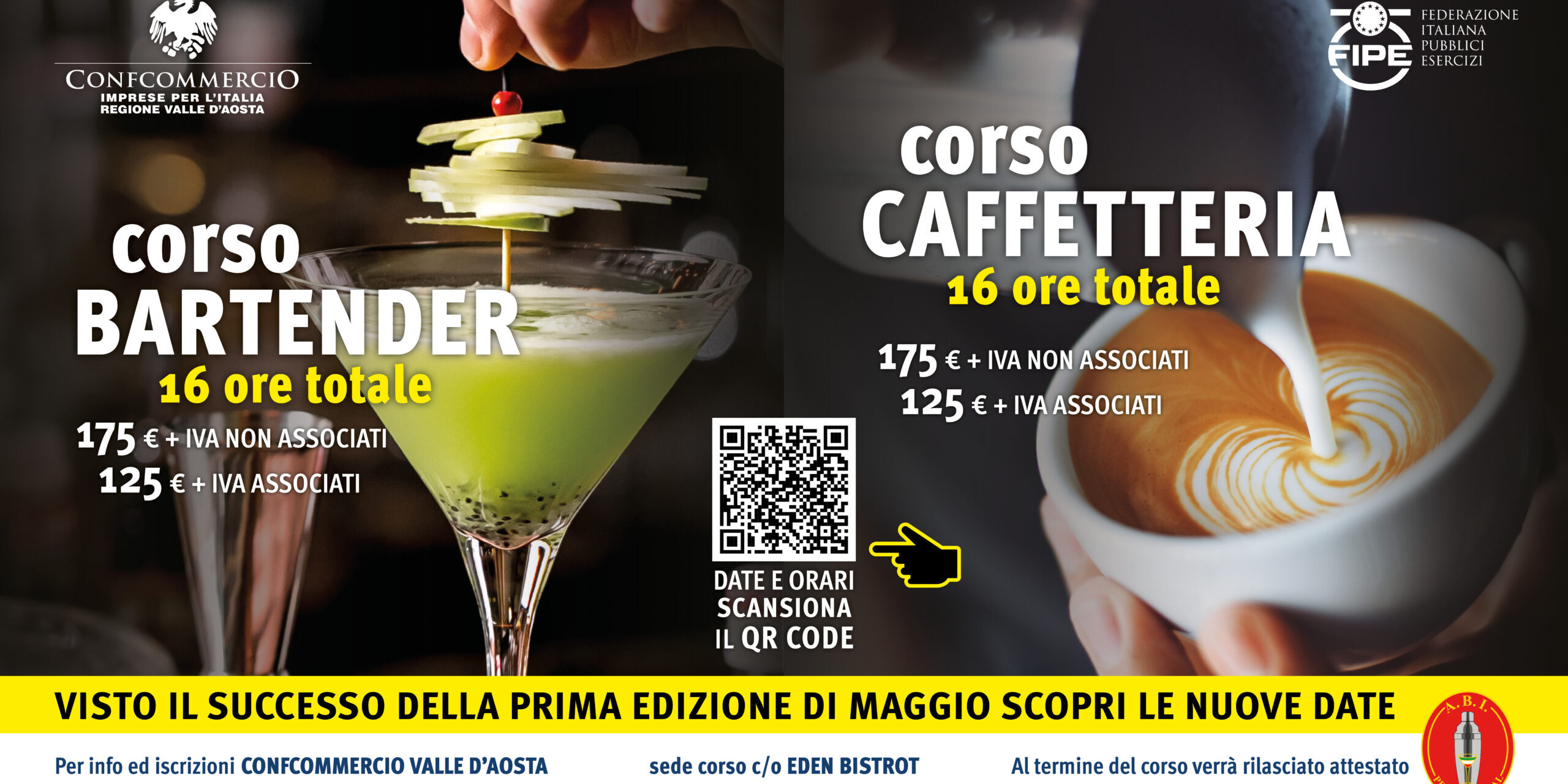 Dopo il successo della prima edizione dedicata alla formazione BARTENDING e CAFFETTERIA, Fipe Confcommercio VdA ha programmato un NUOVO CALENDARIO tutto dedicato a te così come segue: