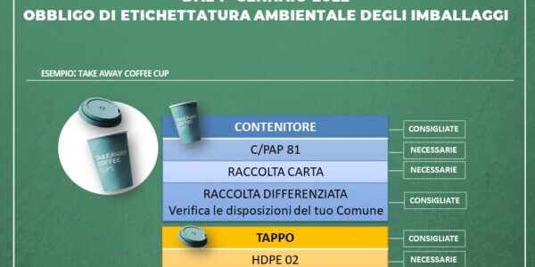 A partire dal 1° gennaio 2022 entrerà in vigore l’obbligo di etichettatura ambientale secondo cui tutti gli imballaggi immessi al consumo (anche quelli eventualmente utilizzati dai Pubblici Esercizi – compresi quelli utilizzati, ad esempio, le doggy bag, il delivery, take away ecc) devono essere adeguatamente etichettati al fine di agevolare le operazioni di raccolta, riutilizzo, recupero, riciclaggio e consentire agli utenti finali (anche consumatori) una corretta informazione sullo smaltimento degli stessi.