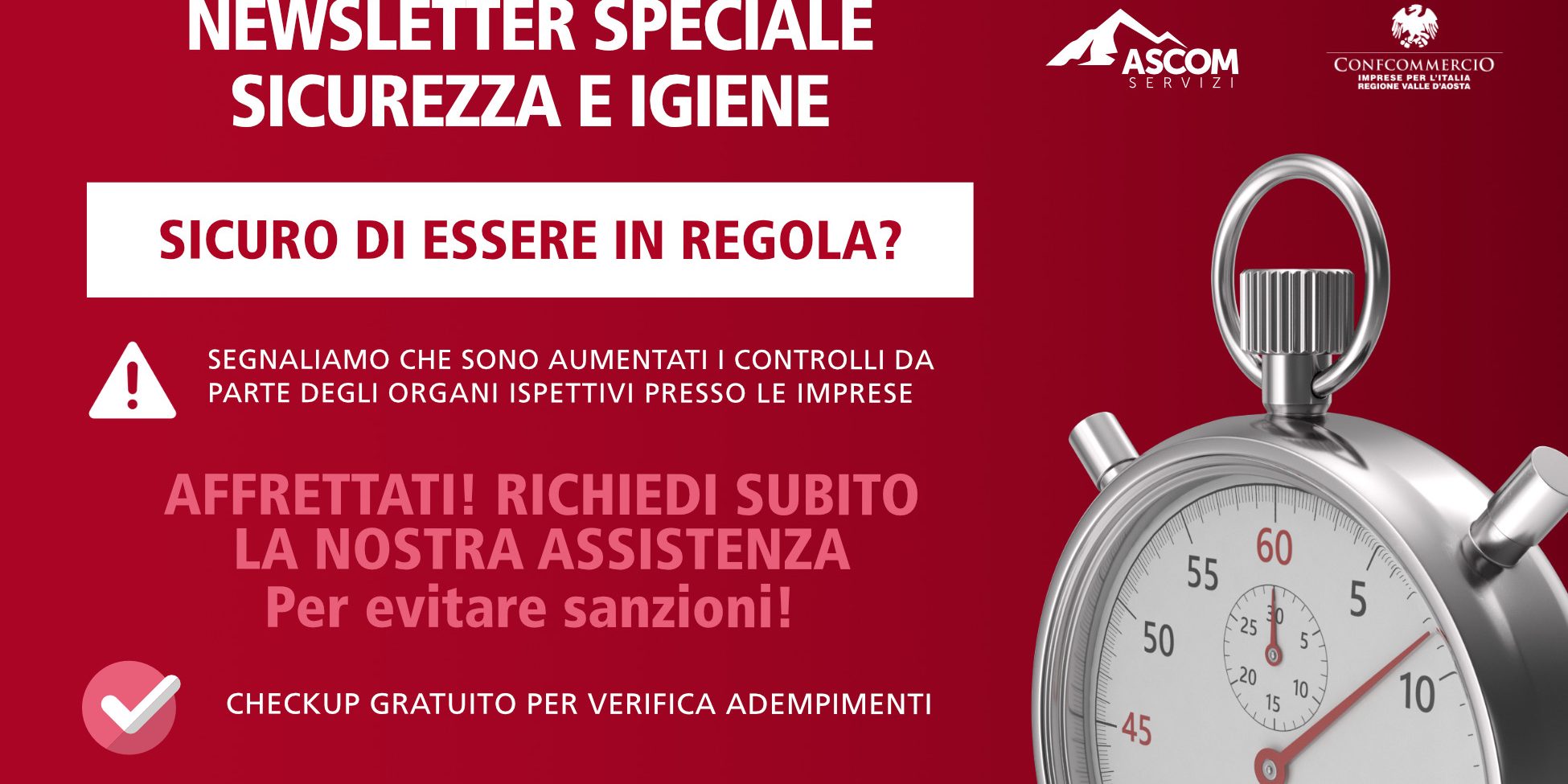 SICURO DI ESSERE IN REGOLA? AFFRETTATI! EVITA SANZIONI ED EVENTUALI SOSPENSIONI DELL'ATTIVITÀ, RICHIEDI SUBITO ASSISTENZA!